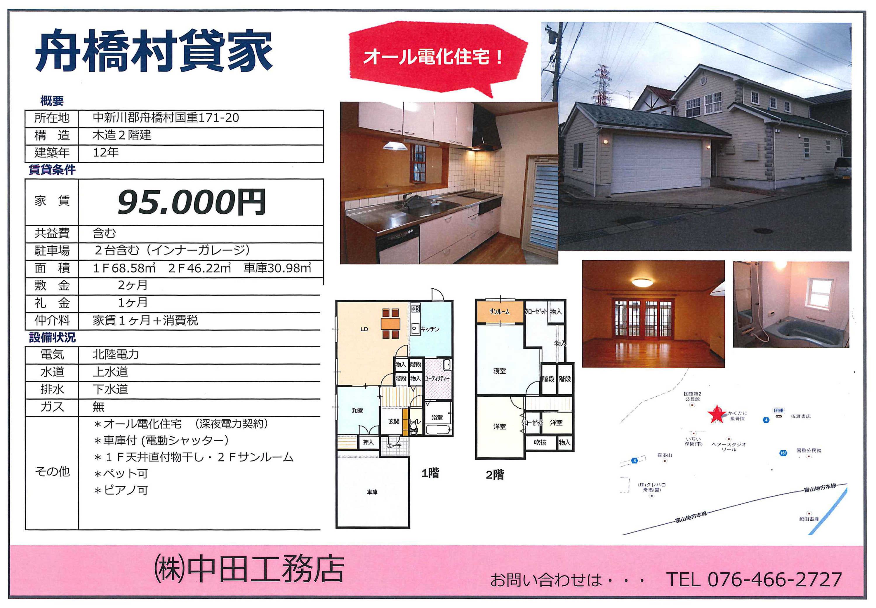 【貸家】富山県中新川郡舟橋村 オール電化住宅!