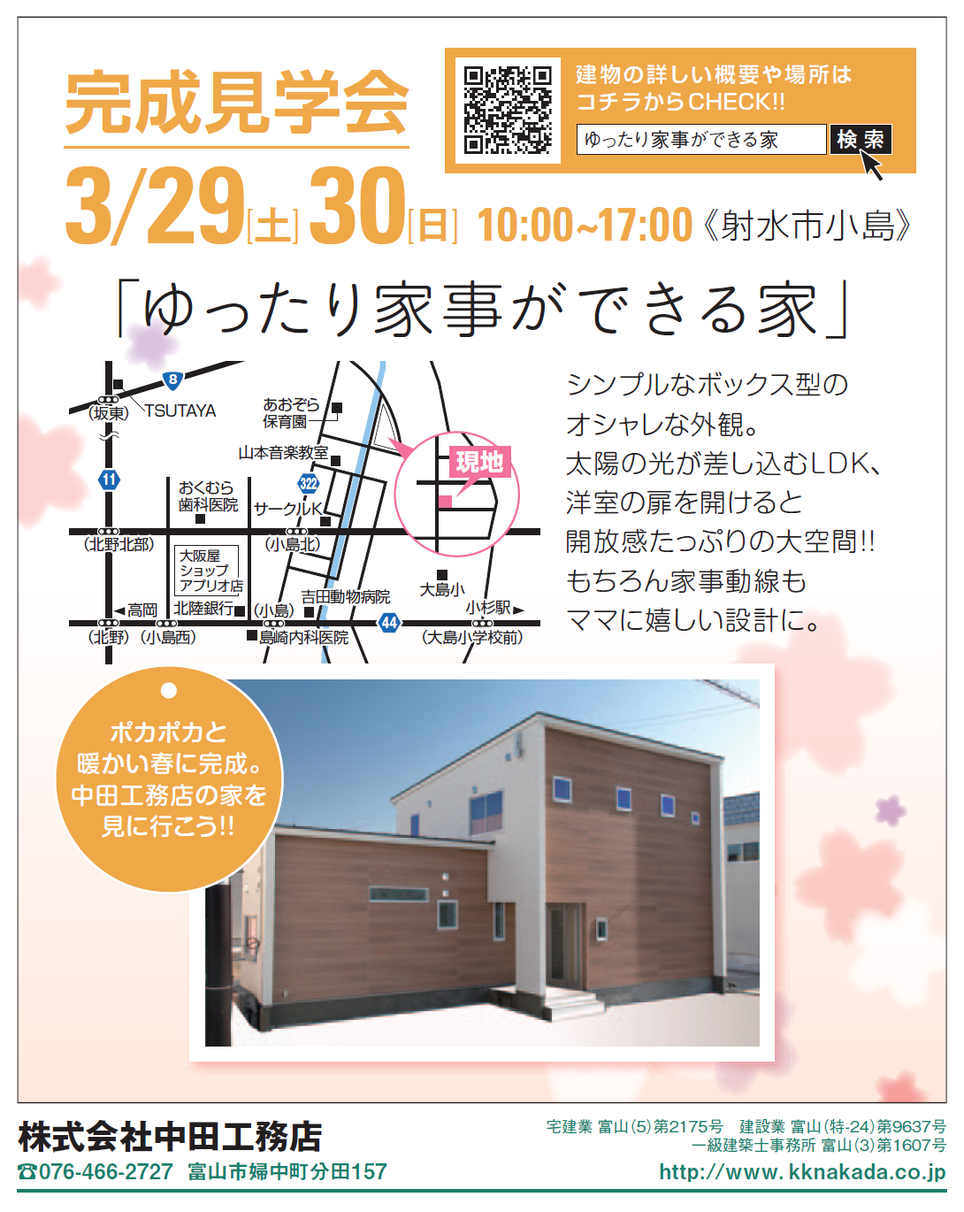 3月29(土)30(日)ゆったり家事ができる家 射水市小島 完成見学会開催