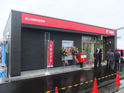 富山羽根郵便局開局 2014.12.29 2014年12月29日羽根郵便局の開局式が行われました! 弊社が施工を担当させていただいた郵便局です。 郵便局のマスコット「ぽすくま」も開局式に参加! 年末年始、年賀状などさっそく大忙しとなりそうですね。 新しくなった羽根郵便局の内観です。 地元の皆様に愛される郵便局になってください^▽^ 開局おめでとうございます。