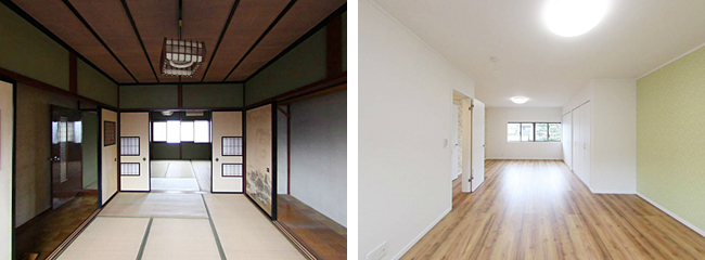 和室2室をつなげ、広々としたLDKへリフォームしました。