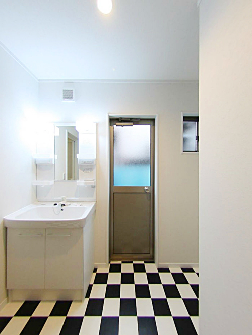 リフォーム前は洗面脱衣室が無い間取りのお住まいでしたが、リフォームにより洗面脱衣室が新しくできました。