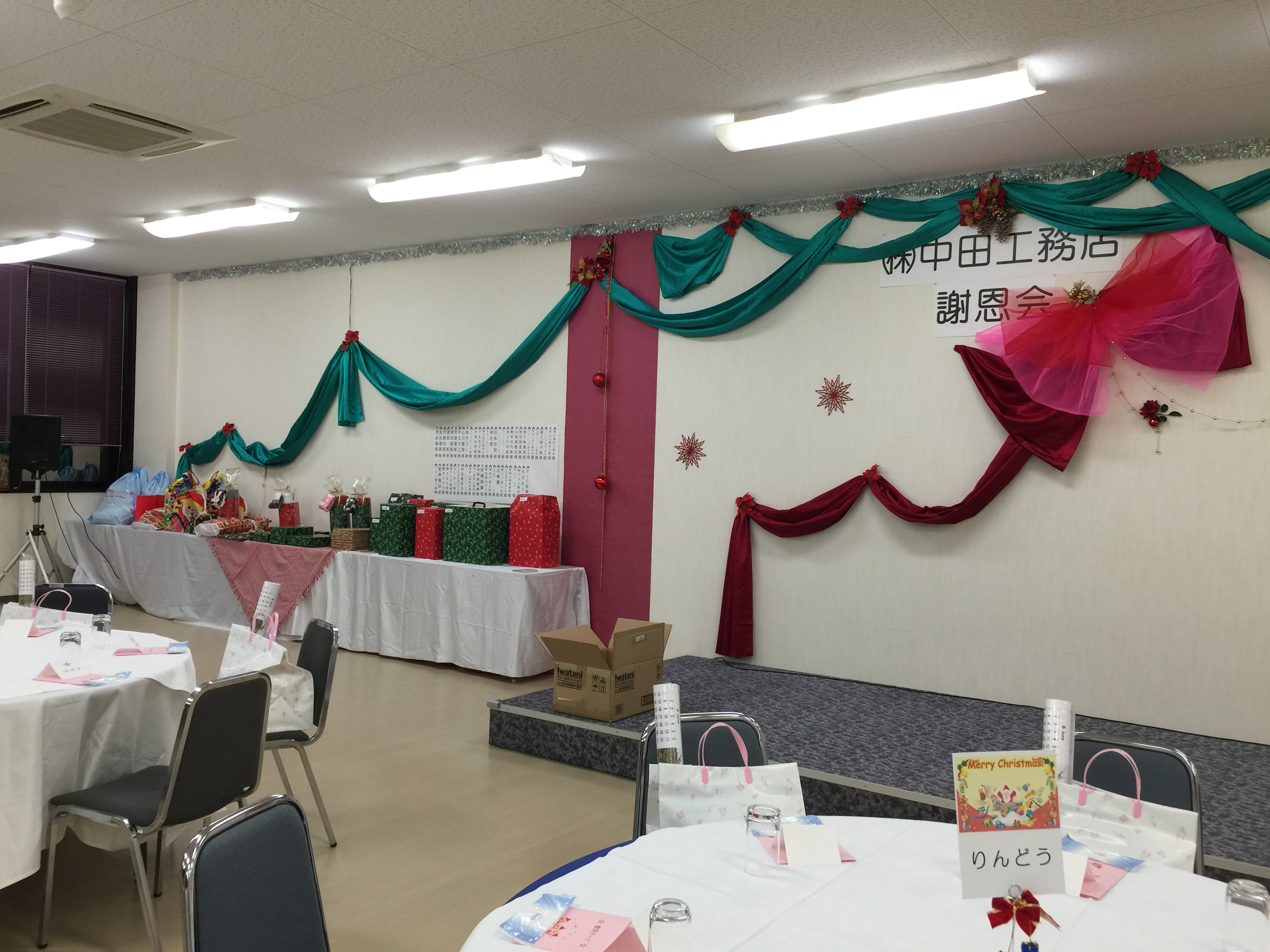 ビッグイベント 2017.11.27 設計課の成瀬です。 今年も12月が近づいてきました。 毎年12月の第1日曜日は、今年1年で お世話になりましたお客様を、当社に招いて謝恩会を開催しています。 設計課は会場ディスプレイ担当です。 大きな壁面にピンで貼り付けていますので、実は壁はピンの跡だらけですが、ピンの跡の数は、お客様への感謝の数。 増えていくように毎年貼り続けたいです。