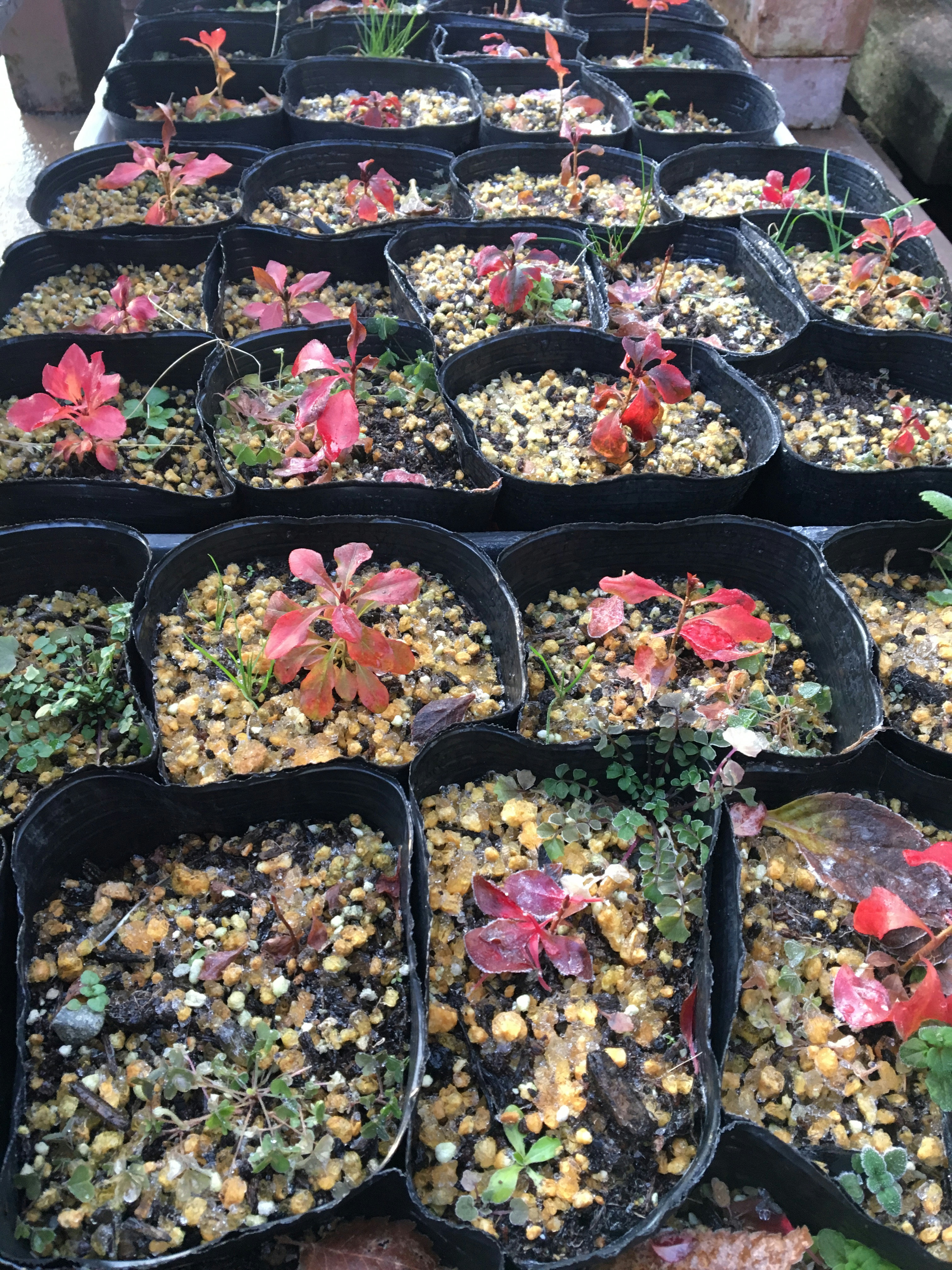 冬になりました。 2017.12.09 夏にドウダンツツジの生垣を除草した時に小さな新芽を見つけてポットに植え替えました。 まだまだ小さいけれど紅葉していました。 この後無事に冬を越して春に緑の葉が出てくるのがたのしみです。