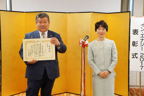 ハウスオブザイヤーインエナジー2017優秀賞受賞 2018.03.29 このたび弊社はハウスオブザイヤーインエナジー2017優秀賞を受賞いたしました。 ハウスオブザイヤーインエナジーとは 「建物躯体とエネルギー設備機器をセットとして捉え、トータルとしての省エネルギー性能の優れた住宅を表彰し、 さらなる省エネルギーによる環境負荷削減の推進と快適な住まいの実現に貢献することを目指しております。 一般財団法人日本地域開発センター」(HPより抜粋) ★3月28日に東京で授賞式が行われ、弊社社長が出席して参りました。 審査員寺尾信子さんと(㈱寺尾三上建築事務所代表取締役)