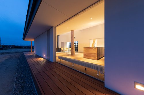 ウッドデッキ リビングの開放的な窓からウッドデッキが見えます。
