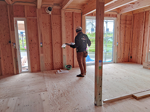 ボルトや金物の位置のチェック、断熱材の施工チェック、機密施工(機密処理がされているか)のチェックなど第三者による監査を行います。