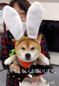 やっとのことで、看板犬ひびき🐕を今年の干支兎🐇に変身させることが出来ました。