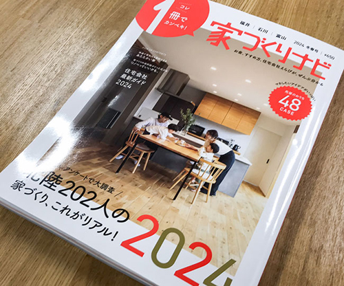 家づくりナビ2024冬春号掲載 2023.12.26 家づくりナビ(カラフルカンパニー)2024冬春号に弊社施工事例が掲載されております。 コンビニエンスストア、書店、オンラインストアなどで入手できますのでぜひ家づくりのご参考にしてみてください。 ・2023年12月28日発売 ・家づくりナビHP 気になる間取りや写真も豊富に掲載されております。