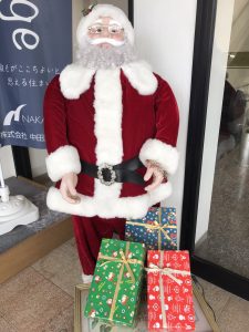 正面玄関ではサンタさんがお出迎えです。