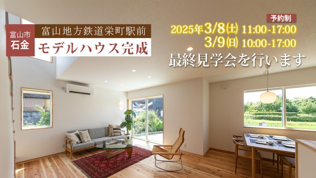 3/9(日)まで富山市石金のモデルハウスで最終の完成見学会を実施中です。