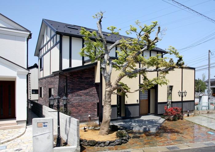 木や土など自然の素材感を活かした優しい表情の外壁。