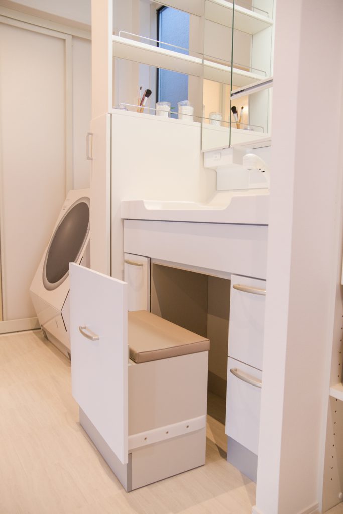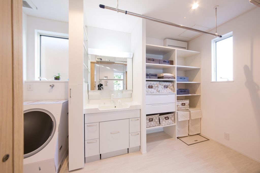 キッチンから10歩以内に、洗面・洗濯・乾燥・収納・子育て空間を!