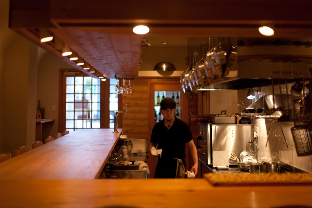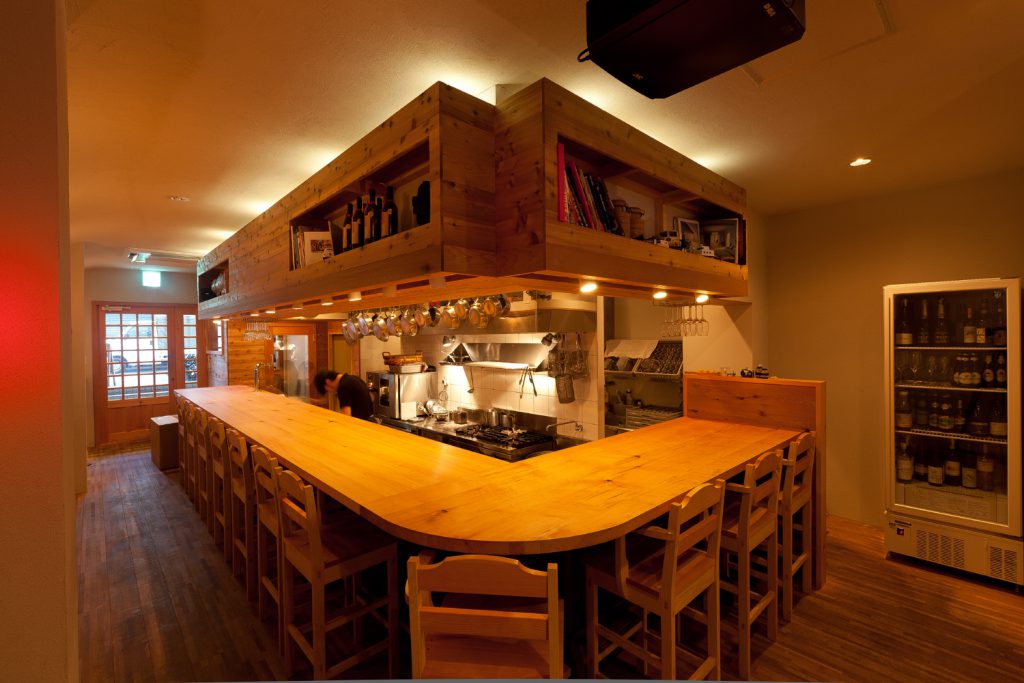 施工に協力させていただきましたイタリアンレストランBASSA様のお店の様子です(インテリア協力 KAKI CABINET MAKER様)