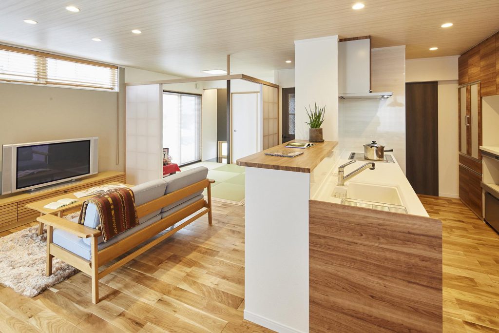 さらにウッドデッキとつながるリビングなどみんなが楽しめる柔軟な空間づくりの提案です。