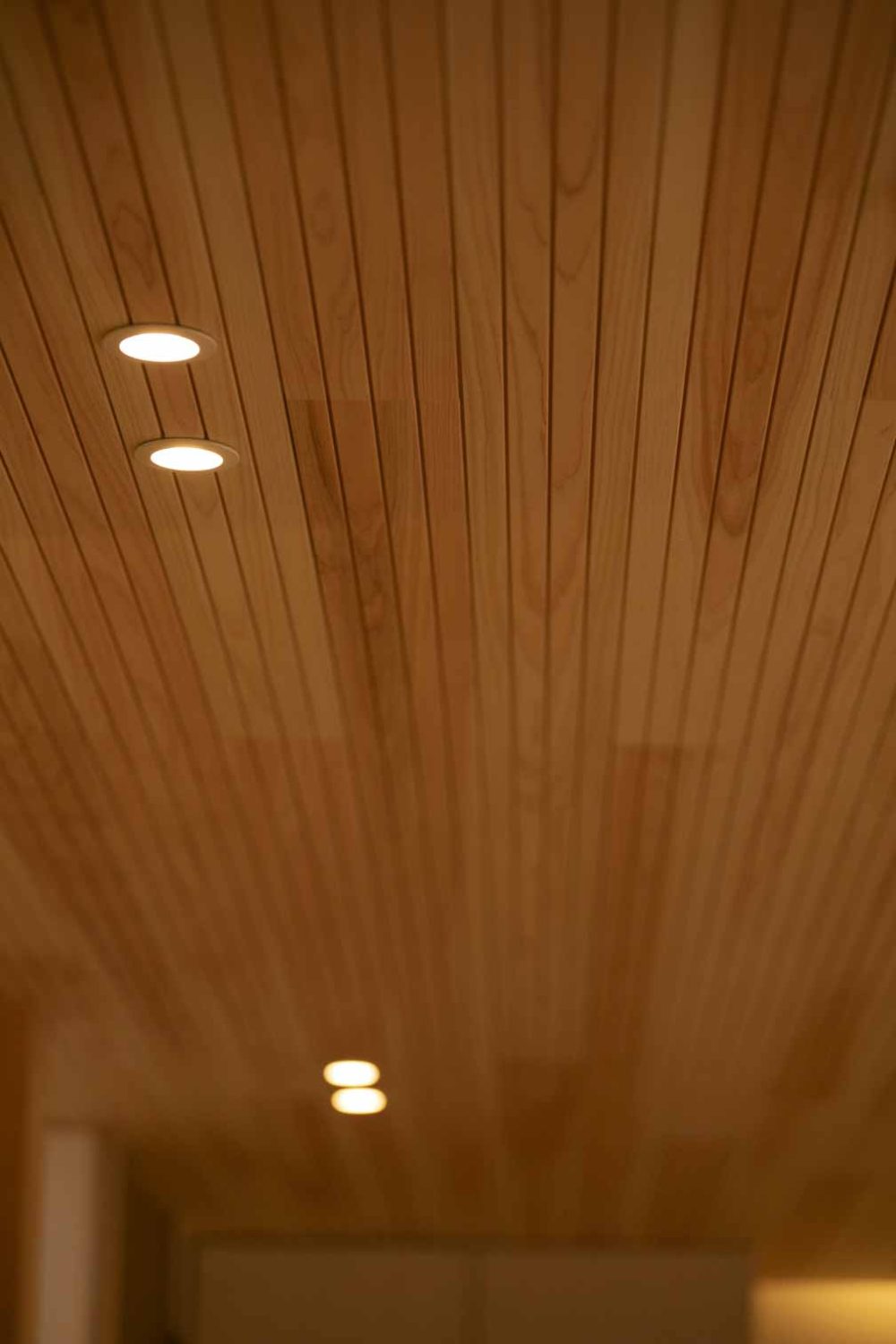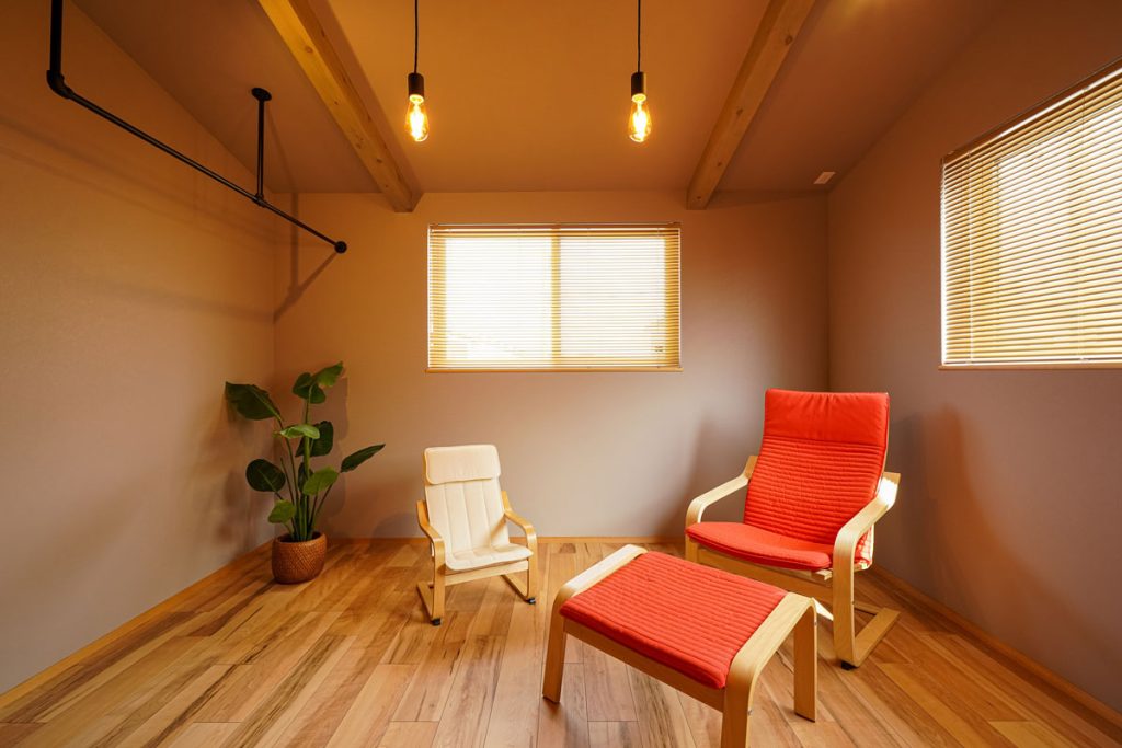 ヒノキや杉の板張りに包まれた空間でお庭の植栽を見ながら読書をする。