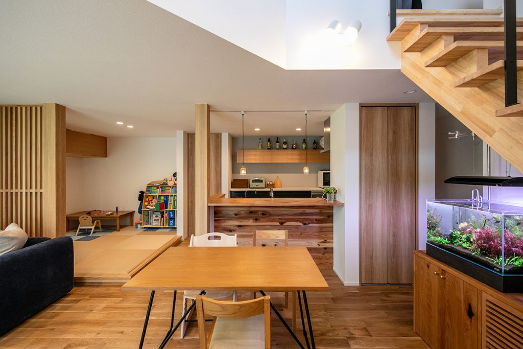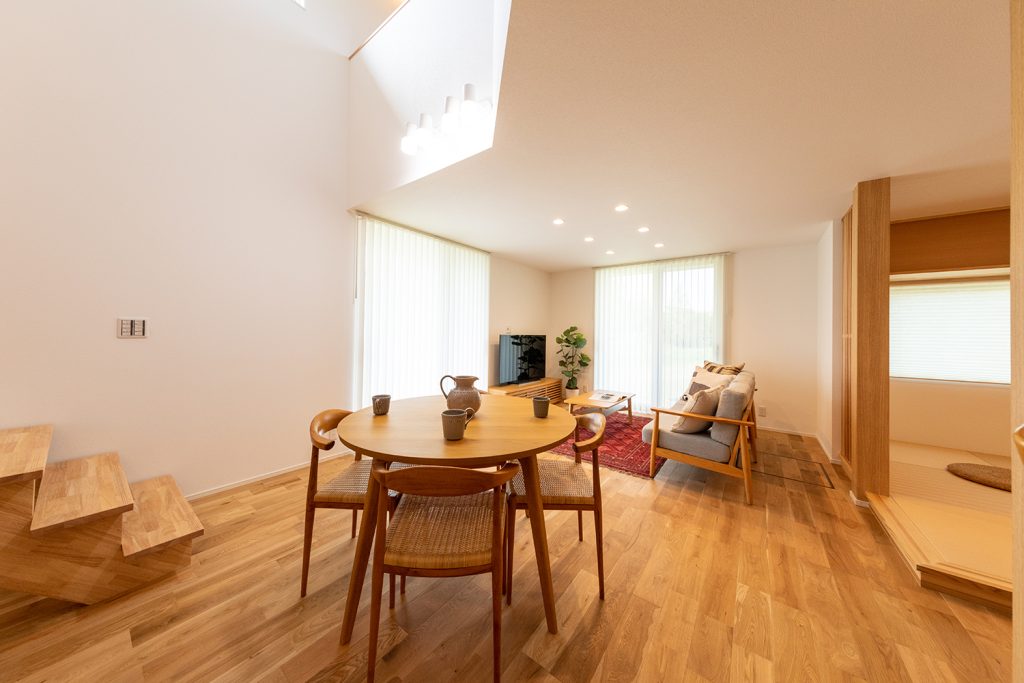 ③ 吹き抜けのある間取りで、家族が距離感を取りながらも気配を感じ心地よく暮らす工夫