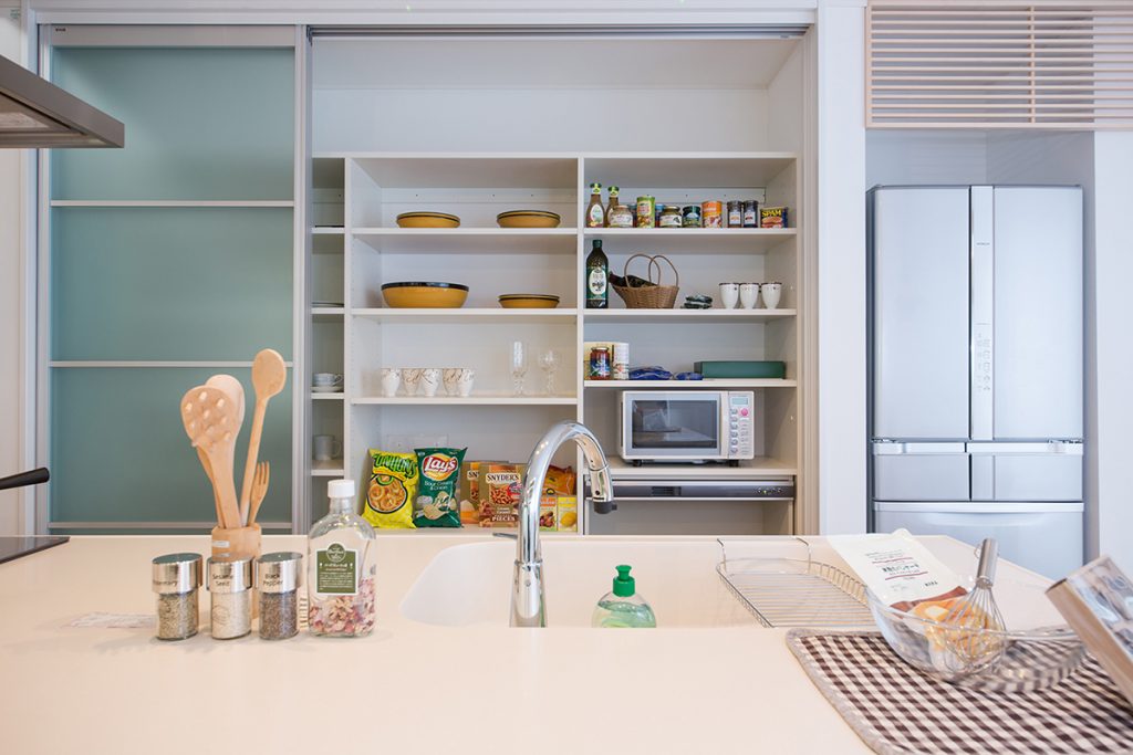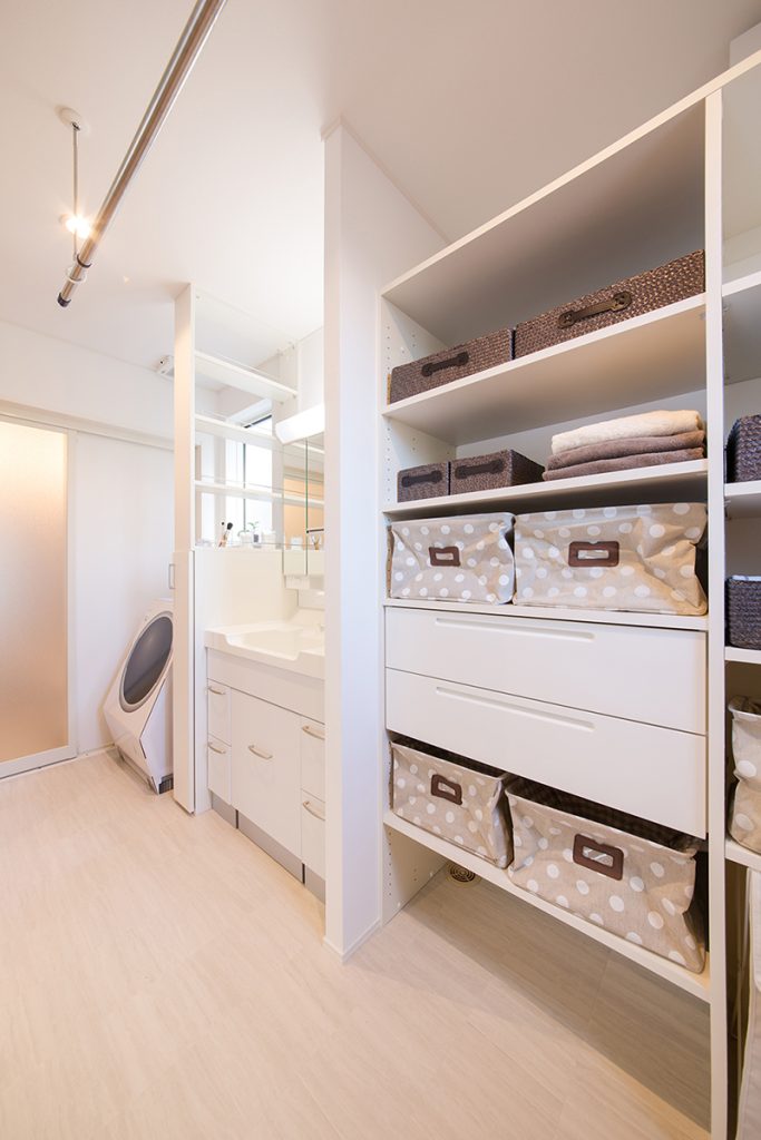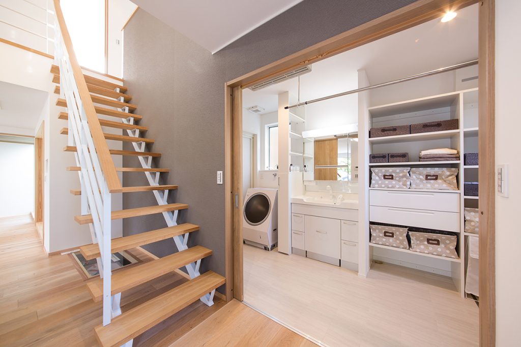 キッチンから10歩以内に、洗面・洗濯・乾燥・収納・子育て空間をつくりました