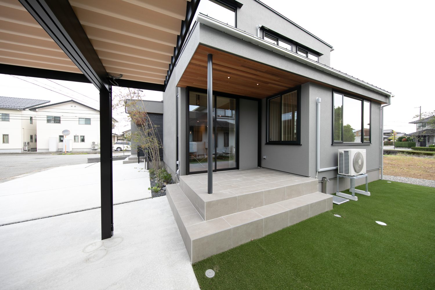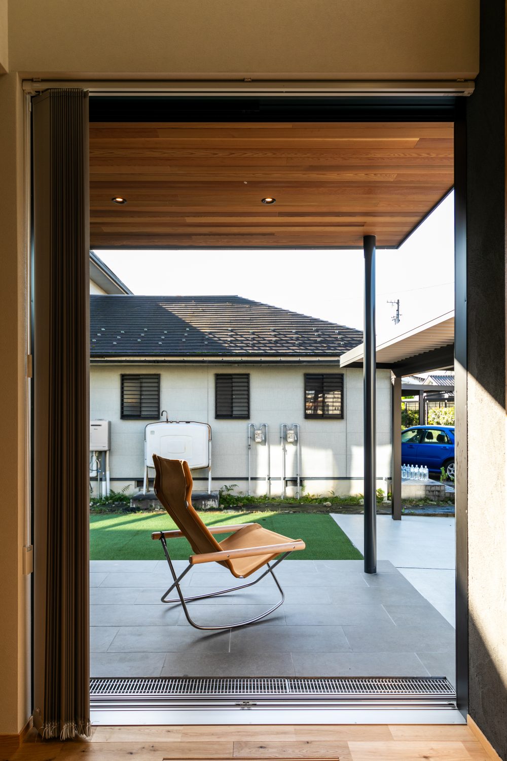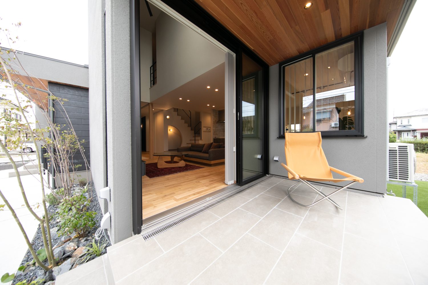 ■室内とフラットに繋がるリビングテラス。開放感的で明るい。