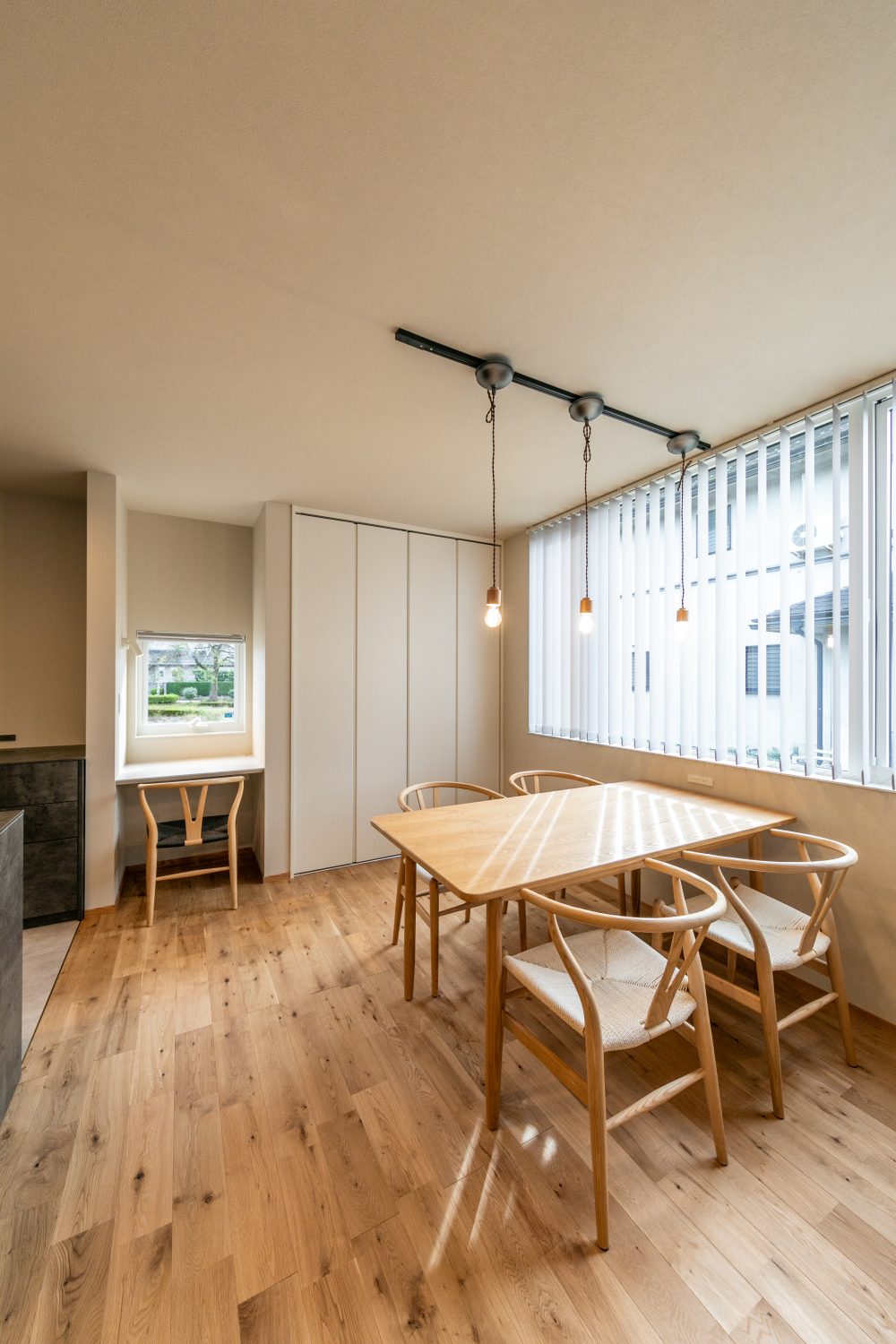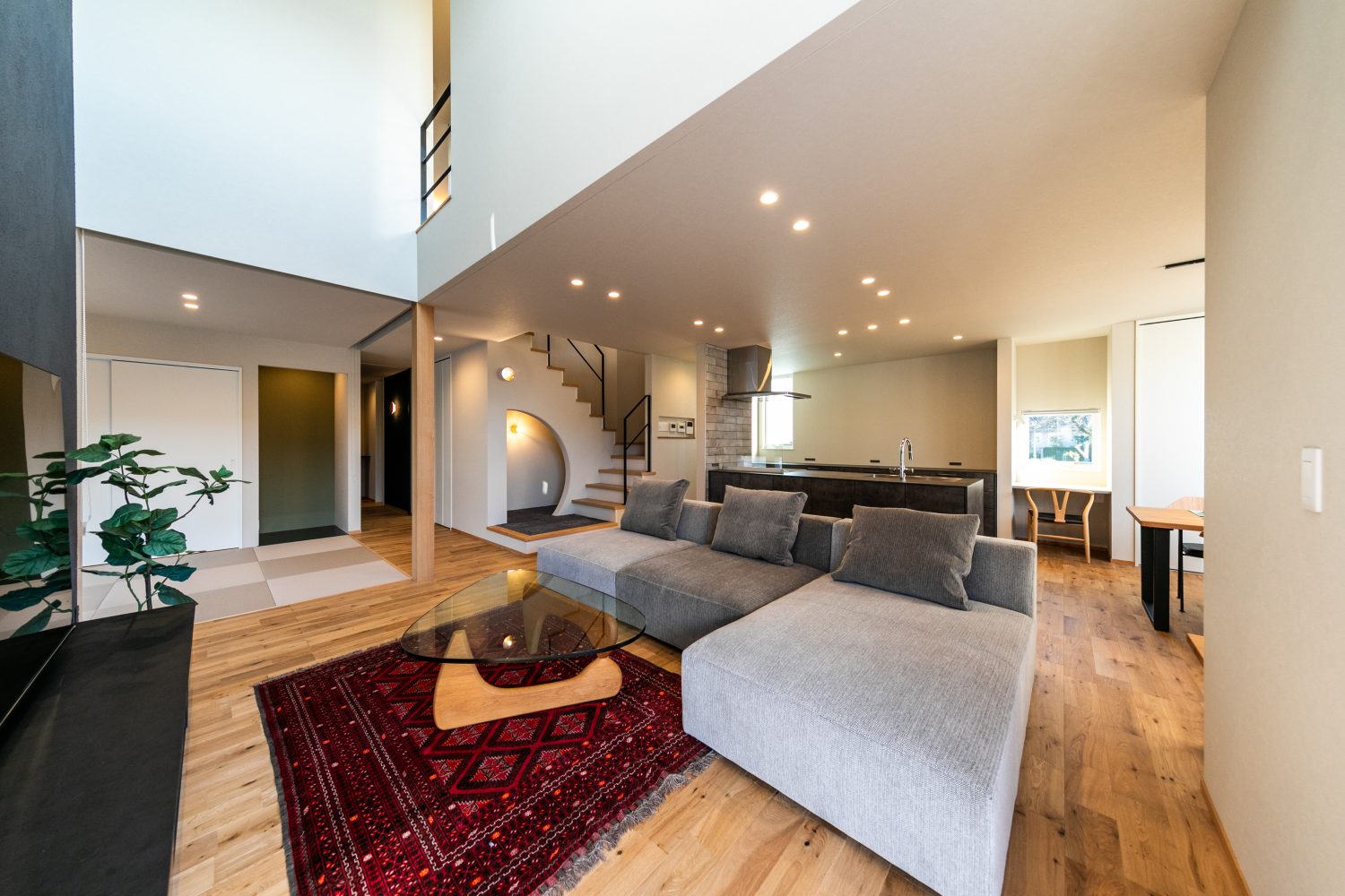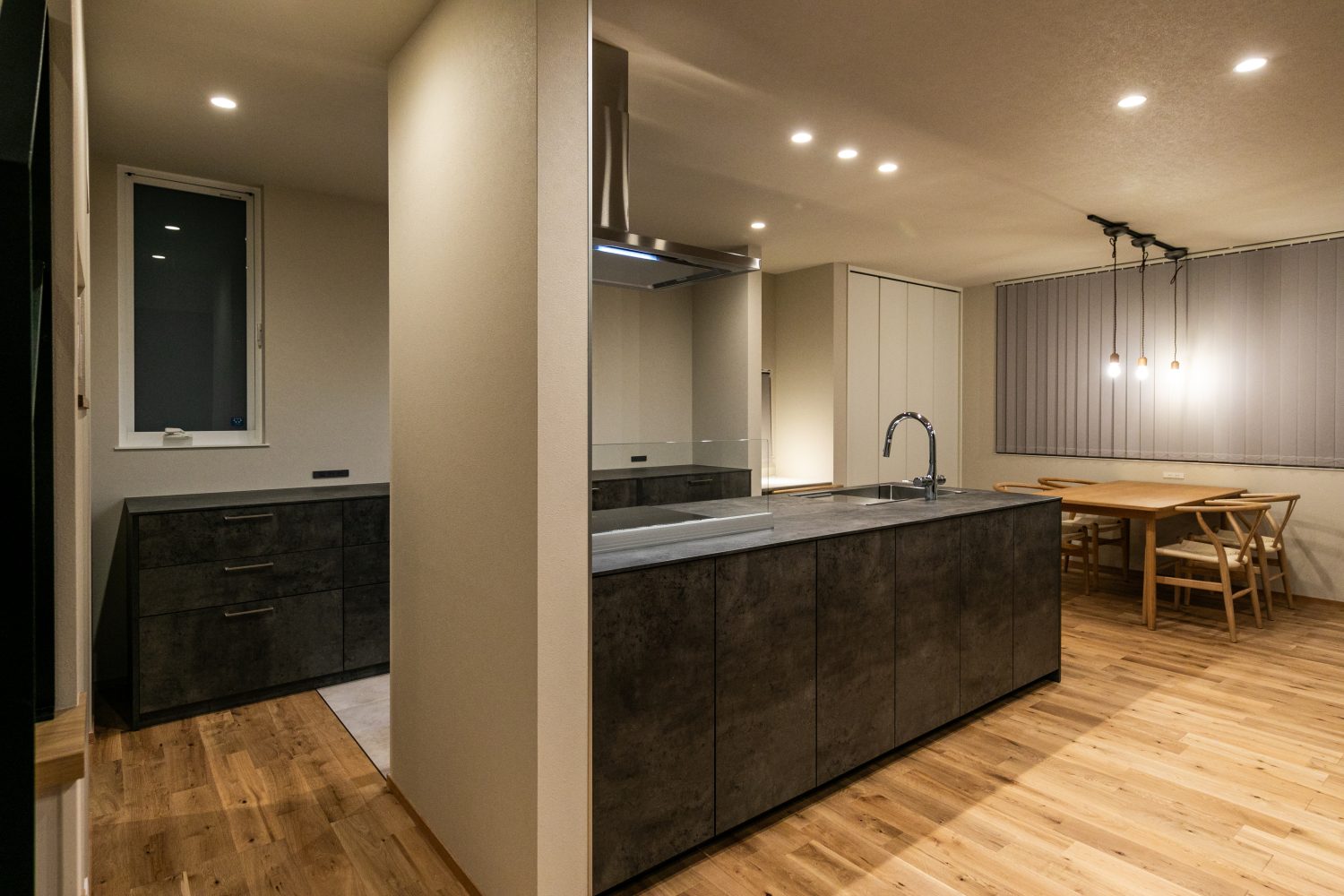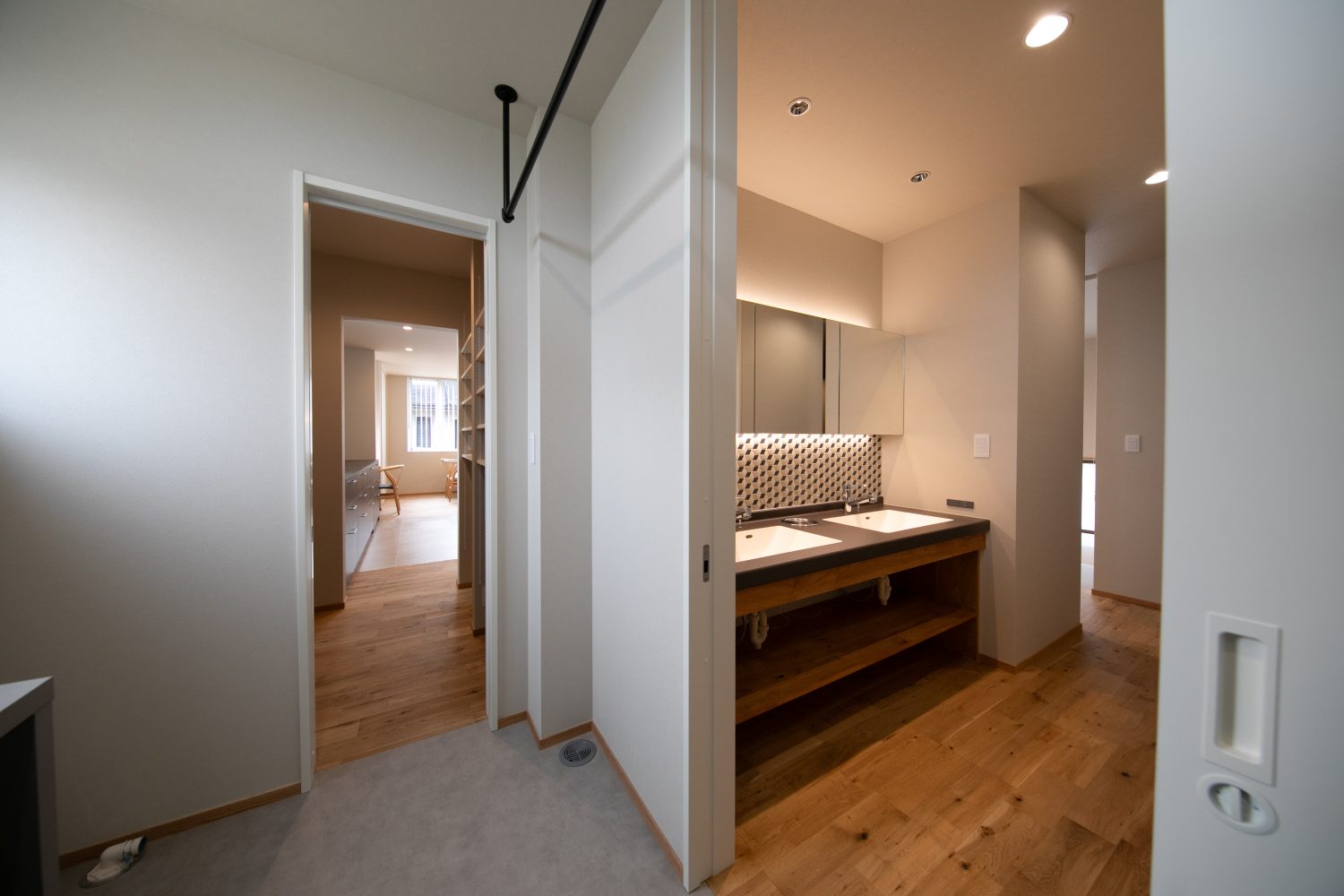 ■無垢フローリング、タイルやぬり壁を使用して、質感ある空間に。