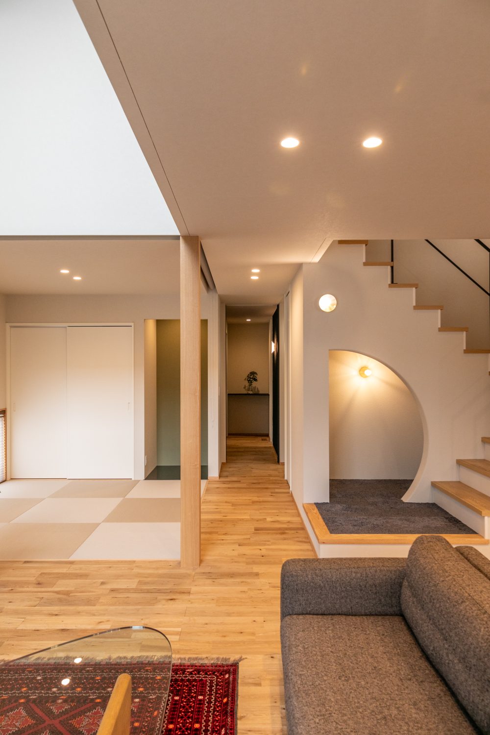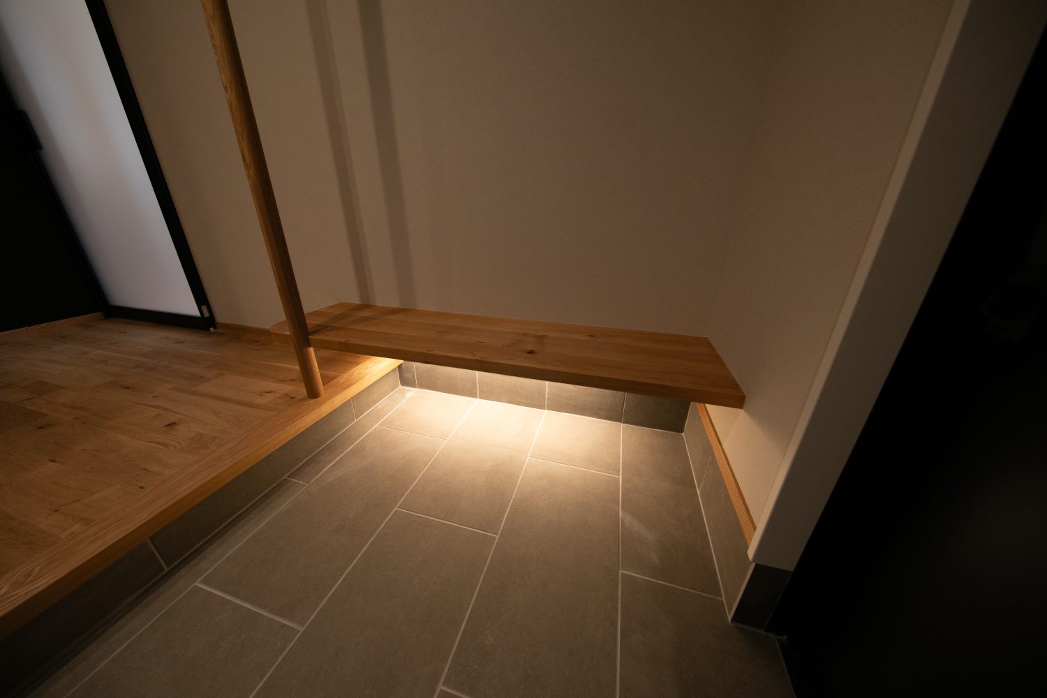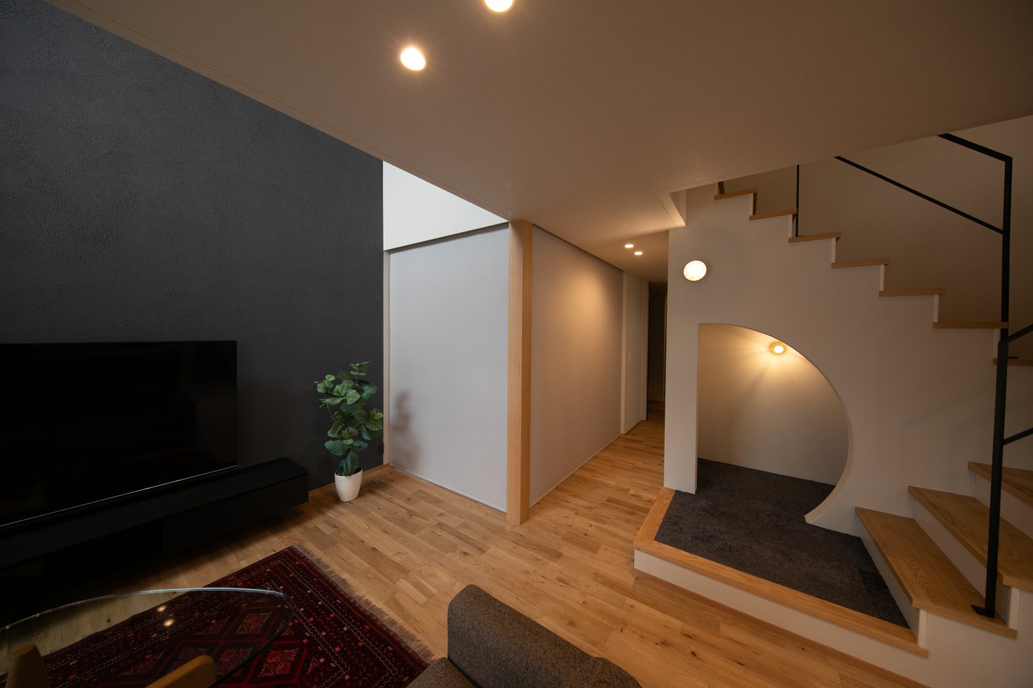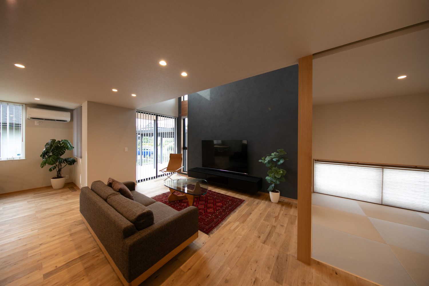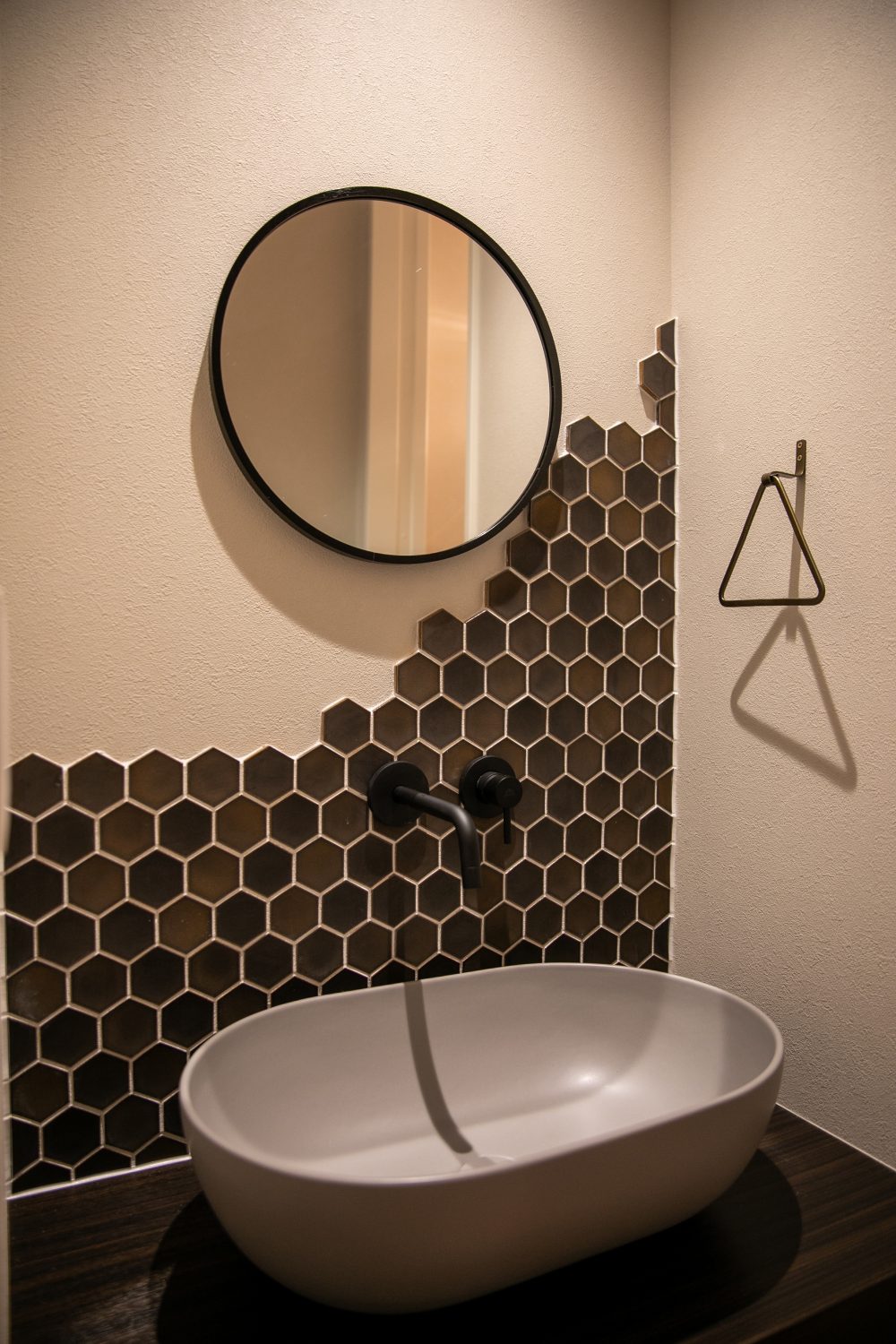 ■無垢フローリング、タイルやぬり壁を使用して、質感ある空間に。