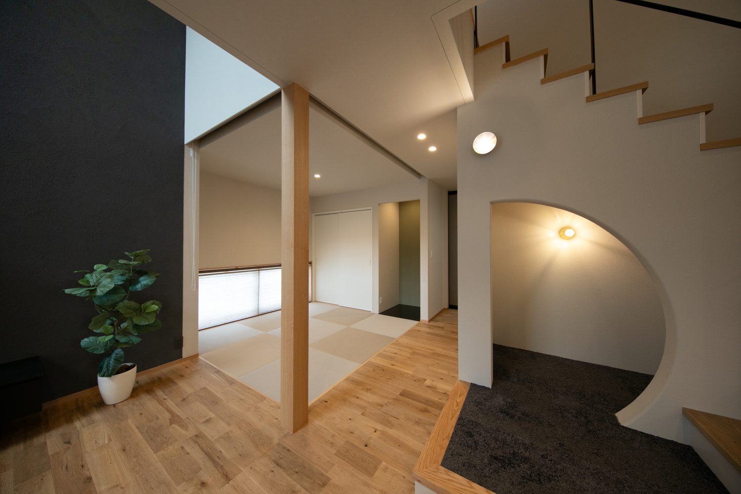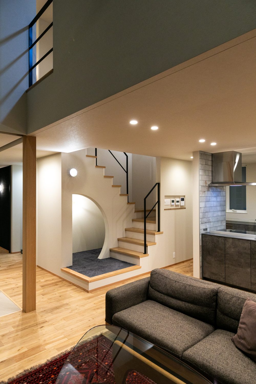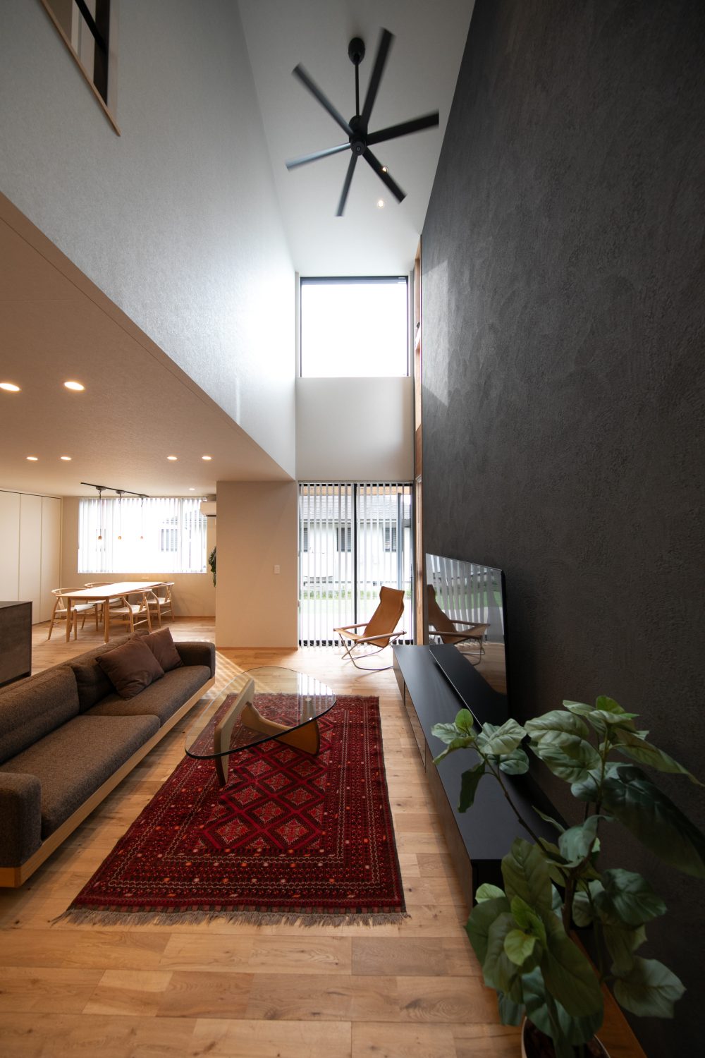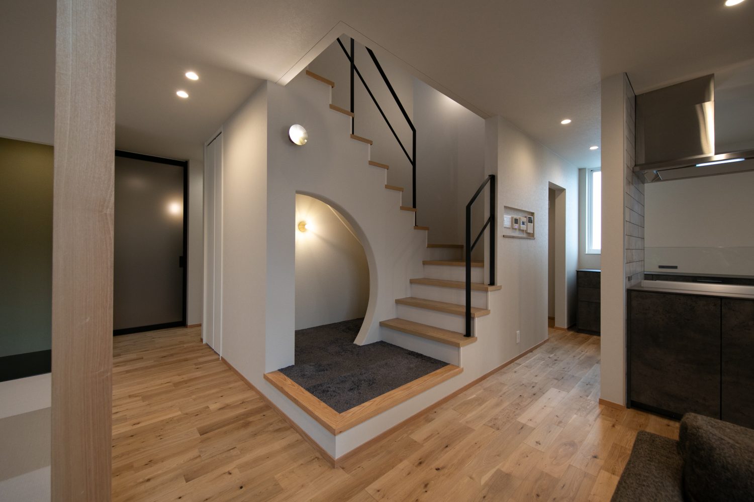 ■無垢フローリング、タイルやぬり壁を使用して、質感ある空間に。