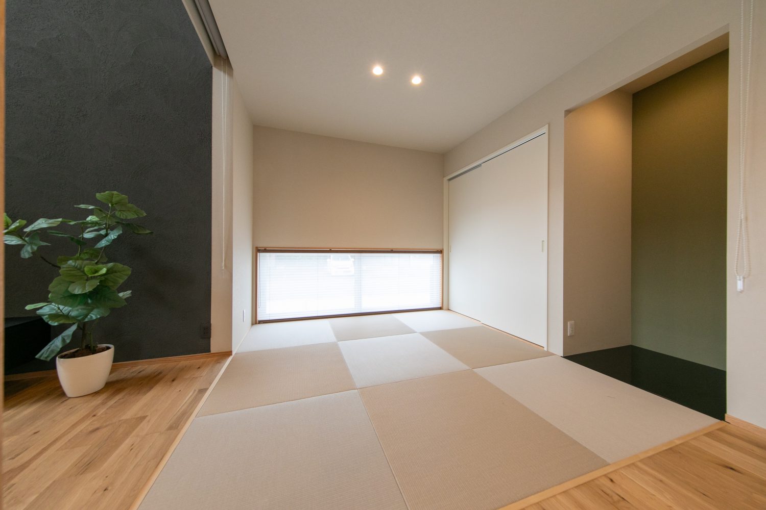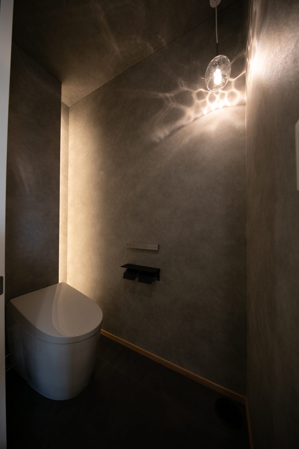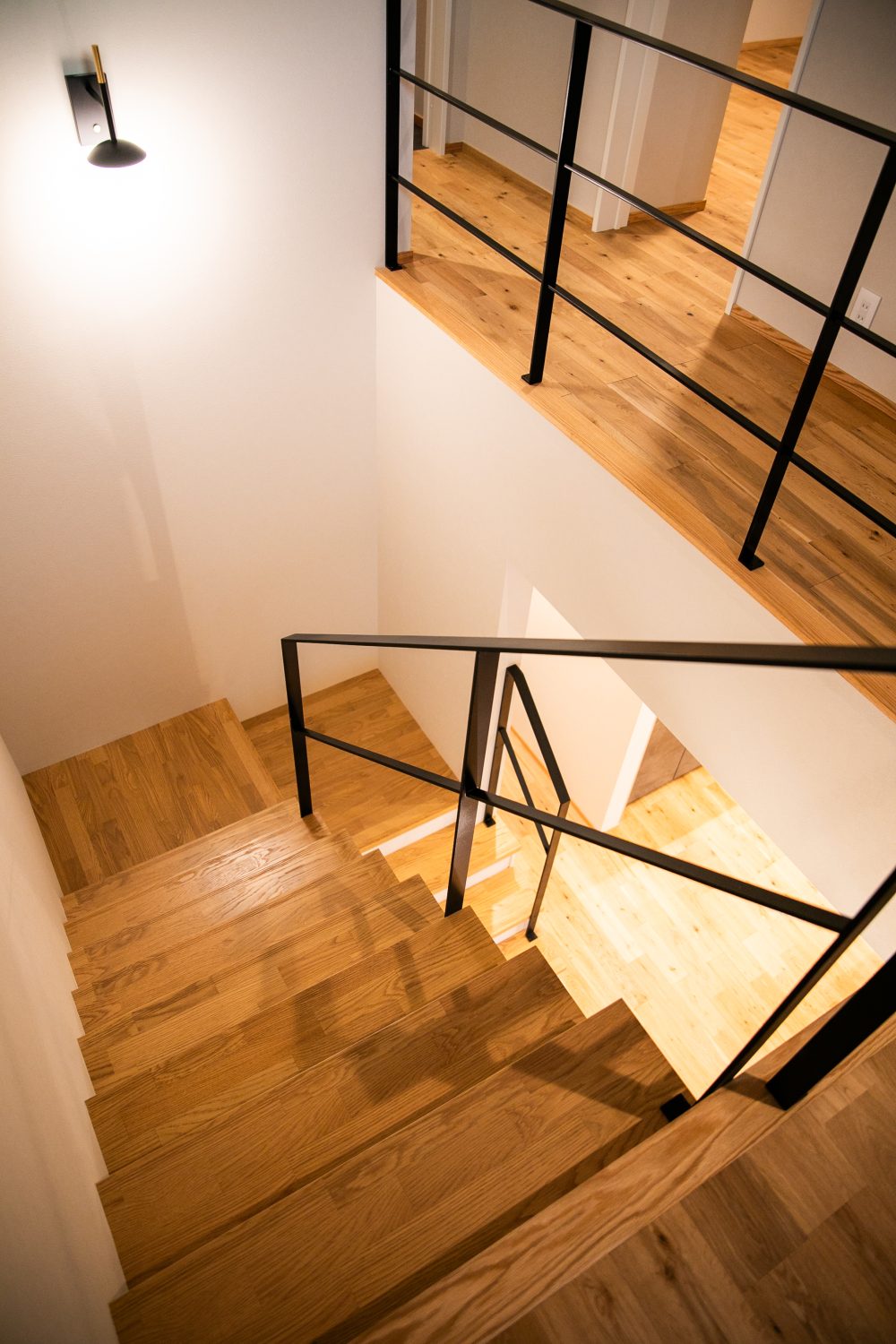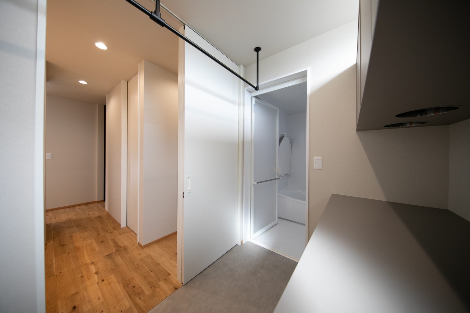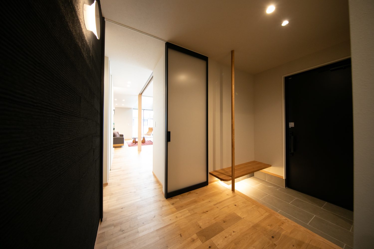 ■無垢フローリング、タイルやぬり壁を使用して、質感ある空間に。