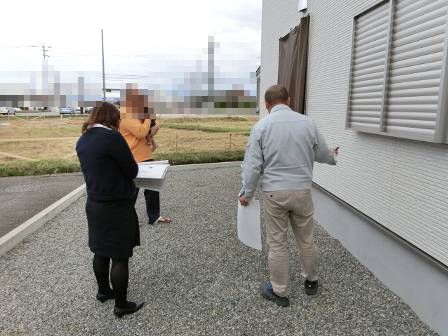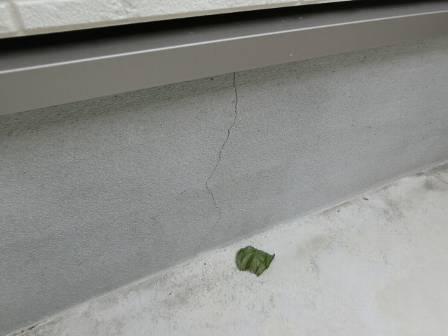 【基礎化粧モルタルのヒビ割れ】2016年10月13日(木)お家の点検1年目(富山市T邸) 2017.03.03 基礎化粧モルタルに小さなヒビ割れを数箇所発見。基礎表面に施されている厚さ数ミリの化粧モルタルだけのヒビ割れだと思われますが、次回の2年目点検で床下検査する時に確認することになります。 [建物後面/北側] [建物前面/南側]