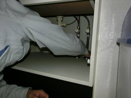 【水漏れ検査】2014年11月13日(木)お家の点検2年目(富山市D邸) 2015.08.03 給排水管からの水漏れの有無を検査。特に異常はありません。お客様によっては洗面化粧台の下に 洗剤等を収納される場合もありますが、早期発見できるように見やすく整理整頓するのもメンテナンスへの第一歩になります。 [洗面脱衣室] [キッチン]
