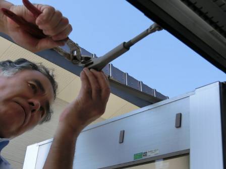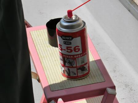 【開き戸の異音】2014年5月10日(土)お家の点検5年目(富山市K邸) 2014.05.29 Q 開閉時に「バキッ」と大きな音がする。 A 現状を確認。クローザーの接合部が錆びているようで摩擦が大きくなっていました。 [2階ベランダ/北側] 潤滑油(CRC)と背の低い脚立をお客様からお借りして、数回吹き付け・何度か開け閉め・馴染ませることで異音が解消されました。屋外にクローザーがあるので、錆びやすい環境であると思われます。 なお、鍵穴の場合はCRCではなく「鍵穴パウダー」を使って頂くようお願いしました。