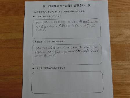 【お客様アンケートでお客様の本音をお聞きします】2015年4月18日(土)お家の点検5年目(富山市婦中町T邸)