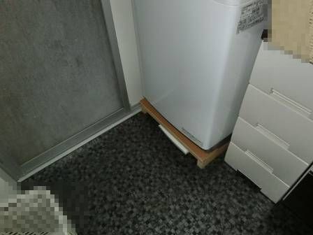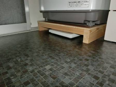 【お客様DIY】2016年6月30日(木)お家の点検5年目(富山市K邸) 2016.12.27 お客様は普段の使い勝手を考えて自家製のストッパーを引き戸の表面に取り付けているご様子。完全に引き戸を開けると反対側から引き戸が閉めにくいこと、閉める時に大きな音がするのを避ける目的があるようです。 [LDK/玄関側] [LDK/洗面脱衣室側] 洗濯機の底部にはお手製の土台が敷いてありました。その下の隙間に体重計を置いてスペースの有効利用をされています。