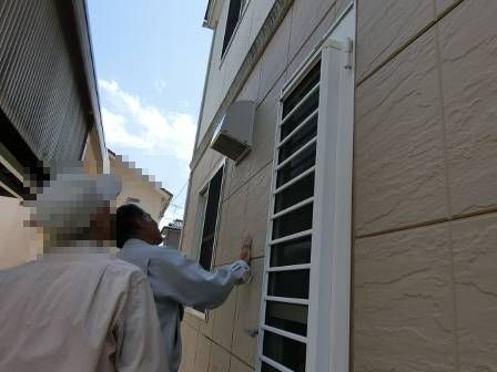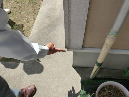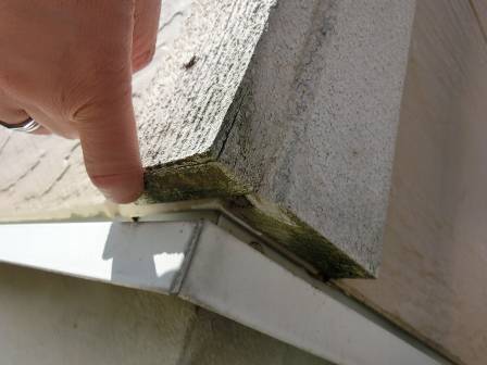 A 記録を見ると、5年目点検以前にお客様DIYで塗装されていたご様子。現状を確認すると、塗装面が劣化・剥がれてきて藻が発生していました。定期的な防水塗装(サンドペーパー等で汚れを落とした後)が必要になる箇所となります。