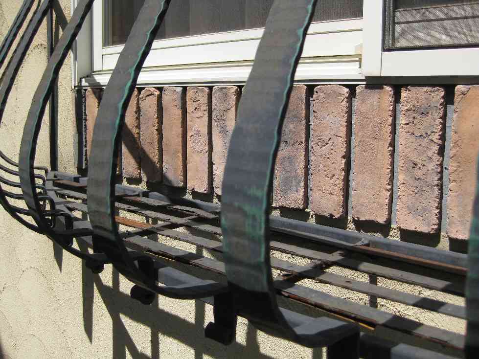 【アイアン製のフラワーボックス】2014年5月30日(金)お家の点検10年目(富山市Y邸) 2014.06.27 アイアン製のフラワーボックスです。表面は防錆処理が施してあるのですが、10年経過した今は一部に錆が発生しているのが確認されました。錆が垂れて外壁等を汚すことも想定されるので、新たな塗装の必要性を助言。