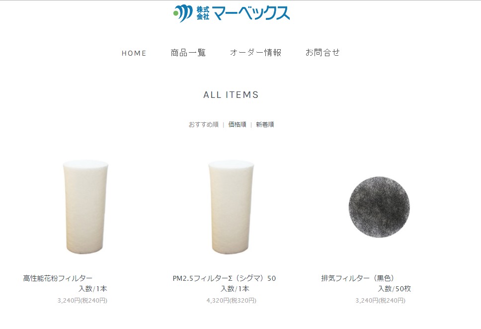 [マーベックスのトップページ]   [消耗品ページの一部]