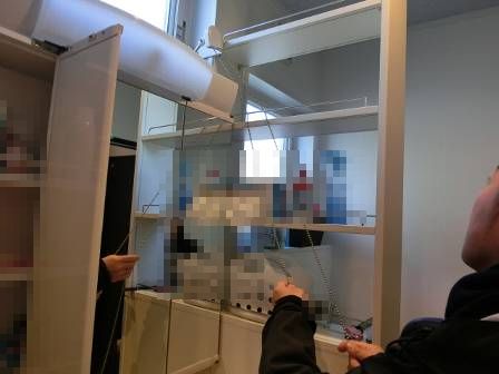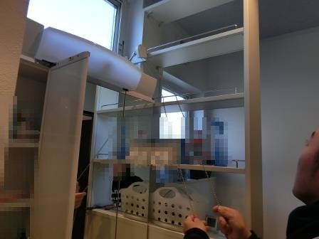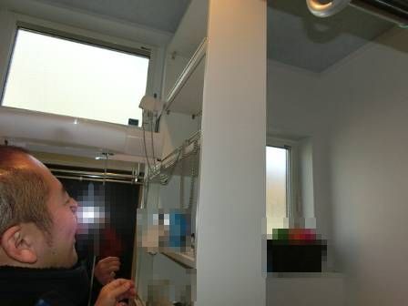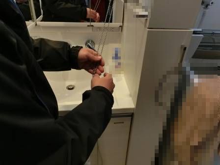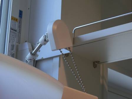 【オペレーター付き窓の鎖が長すぎる】2016年2月25日(木)お家の点検1年目(高岡市S邸) 2016.03.15 オペレーターのチェーン(鎖)が長すぎて垂れ下がって邪魔になっている。 [洗面脱衣室] 現状を確認。手の届きにくい窓の開け閉めにはこのようにオペレーターに鎖が付いたものが重宝されます。わざわざ台に上がらなくても鎖を引っ張ることで楽に開閉できます。鎖が長すぎる場合は途中で切るのですが、勘に頼って適当に切るのではなくオペレーターが通る鎖のパターンを考慮して切る必要があります。 途中で切るポイントを設定してペンチで切り詰めました。以前よりも短くなって垂れ下がることはなくなって使いやすくなりました。