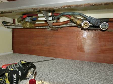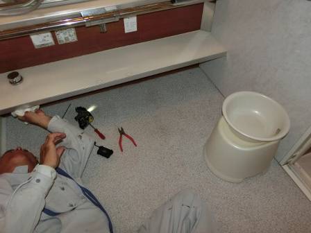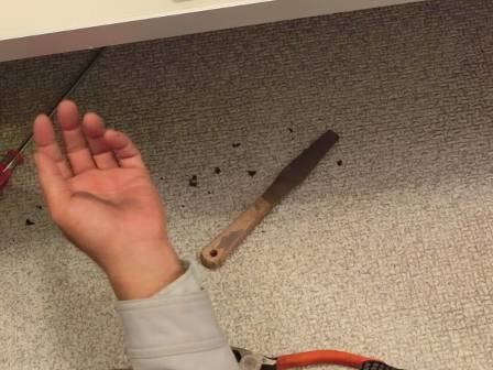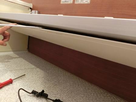 【カバーのはずれ】2016年11月22日(火)お家の点検10年目(富山市K邸) 2017.03.04 Q 浴室の棚の下カバーが外れかかっているのでは? A ドライバーの先端を隙間に差し込んで現状を確認。カバーを取り外してみるとホコリが溜まって汚れていたので、屋外で水洗いをしました。 [浴室] 棚の下部にこびりついていた汚れはヘラで擦り落としました。カバーに少し隙間があったのは新築施工時にビスの入れ方が少しずれていたのかもしれません。