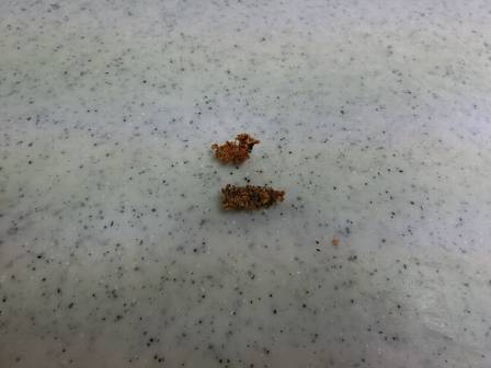 こびり付いていた油カスを取ってみました。よく見ると排水は最後まで流れておらず、少し溜まっている状態。後日、メーカーに相談することになりました。