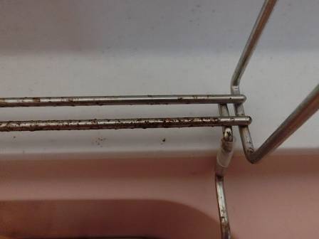 現状を確認。ステンレス製の金具ですが、全体的にサビが発生していました。
