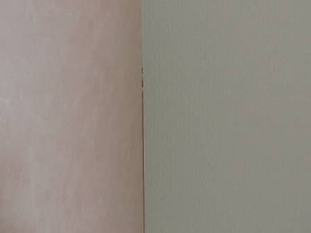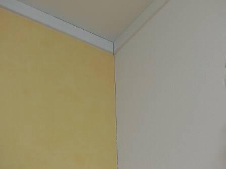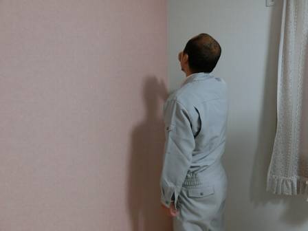 【クロスに隙間が発生】2015年11月24日(火)お家の点検1年目(高岡市T邸) 2016.02.20 部屋の隅っこでクロス同士が召しあっている部分に隙間を発見。お客様は特に気にされておらず、起こり得る現象を認識されていました。クロス保証は2年目まであるので、2年目点検の状態を見て対処することになりました。 [2階居室] 部屋の隅っこで隙間部分が白く見える部分は隙間が開くことを前提とした施工(クロスを切る)であり、隙間部分にはあらかじめ弾性のあるコークボンドを充填しています。