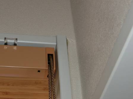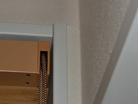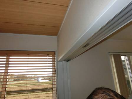 【クロスのめくれ等】2015年2月20日(金)お家の点検1年目(魚津市M邸) 2016.02.18 クロスがめくれているのを発見。 [LDK/南側] 狭い場所だったので、指にコークボンドを塗って、めくれ部分に充填して目立たないように補修します。