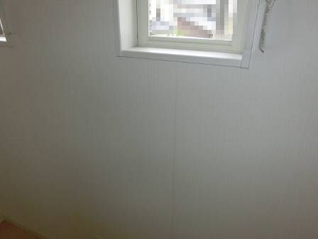 【クロスのヒビ割れ】2015年9月5日(土)お家の点検5年目(高岡市M邸) 2016.02.19 Q 以前にクロスのヒビ割れを目立たないように補修してもらったが、コークボンドを充填した周囲にはホコリ等がくっ付いて汚れてしまう傾向があると聞いた。 A 現状を確認。指で触ってみると、ヒビ割れ部分が目立たないようにコークボンドを充填した跡がありました。壁クロスのヒビ割れは木部や下地ボードが湿度変化等によって伸縮することで一般的に起こり得るクロスの変化・現象であると説明し理解して頂きました。 [2階居室]