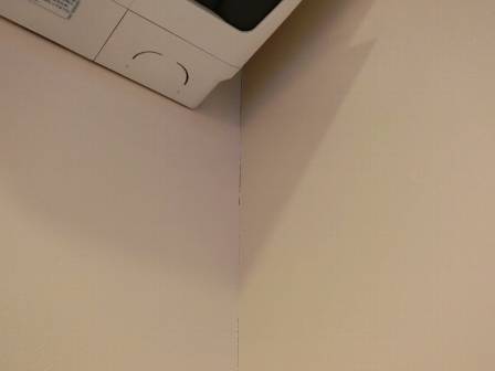 【クロスの変化】2013年11月18日(月)お家の点検1年目(富山市T邸) 2014.02.27 クロスの浮き等を発見。クロス保証は2年です。2年目点検のフォローで対処することになります。 [リビング/隙間] [リビング/浮き]