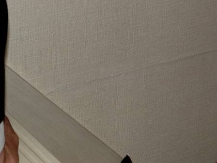 1年目点検で話題にあったクロスの膨らみ現象。今回は2年目点検でクロスの保証期限なので、弊社発行の保証書に基づき対処することになります。クロスの膨らみ現象に対処する方法では膨らみ部分にカッターで切れ目を入れています。