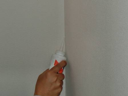 対処法としてコークボンドを充填して目立たないようにするしかないことを説明し、理解して頂きました。この場所は営業の永原がコークボンドを直接充填、コークボンドを指先に取ってヒビ割れ箇所に塗り込み補修することになりました。