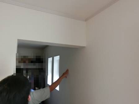 【クロスの変化等】2014年6月20日(金)お家の点検1年目(富山市N邸) 2015.03.06 Q クロスが浮いてきている。 A 天候や季節の変化等による湿度変化の影響で下地材が伸縮、これに伴って下地ボードが動くことでクロスが追随する「起こり得る現象」と思われます。後日、目立たないように補修することをお約束。 [2階ホール/浮き] [2階WIC/浮き] [2階フリースペース/よじれ] [2階居室/割れ]