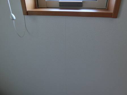【クロスの変化等】2015年4月29日(水)お家の点検5年目(富山市S邸) 2016.02.18 Q クロスに割れや浮きがある(事前葉書) 現状を確認。壁クロスの割れや浮き現象が下地ボードのジョイント部分で発生していました。木造住宅は湿度変化等による木部の伸縮(調湿機能)によってチカラが下地ボードからクロスへと伝わっていきます。クロスの経年劣化等で下地ボードの動きに追随できなくなり変化が現れてくると思われます。 [2階居室/クロスの割れ] [2階居室/クロスの浮き]