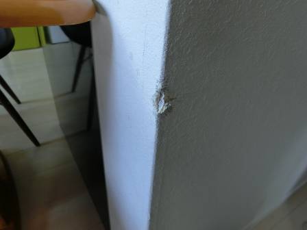 Q 以前この場所に回転イス(ベビーチェア)があった。ぶつける頻度が多くなるにつれて、角っこが次第に欠けてきた。何か良い方法はないものか?