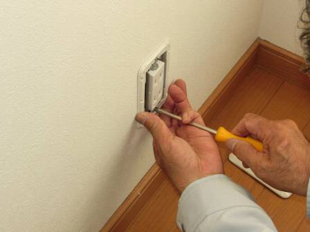 【コンセントの傾き】2016年10月18日(火)お家の点検10年目(富山市I邸) 2016.12.27 Q 使い方が悪かったのか、コンセントがグラグラになってしまった。 A 現状を確認。コンセントカバーは手で簡単に外せること、内部はドライバーでビスを増し締めできること、そして何よりも「カバーを開けて触っただけでは感電しないこと」を見て頂きました。 [2階サンルーム]