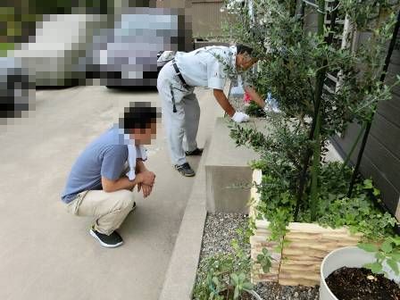 【シーリングのヒビ割れ】2016年7月8日(金)お家の点検5年目(富山市婦中町I邸) 2017.03.03 お家の立地条件・周辺環境等によってシーリングに少しヒビ割れが発生することもあります。 [建物左面/南側] シーリングが太陽の紫外線等による経年劣化等でヒビ割れが発生してきても下地には防水シートが施してあるので、直接的な雨漏りの原因にはならないと思われますが、今後は将来的な改装計画も少しずつ検討して頂くようお願いしました。 [建物後面/西側]