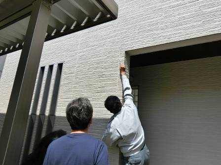 また、外壁材の表面には防水塗装が施されていますが、塗膜が劣化してくるので将来的な外装工事にも備えて頂くようお願いしました。